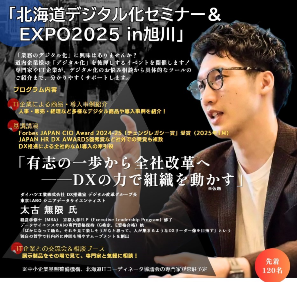 株式会社プラスラスが北海道庁が主催する「北海道デジタル化セミナー & EXPO2025」の函館市、旭川市の会場に出展します。